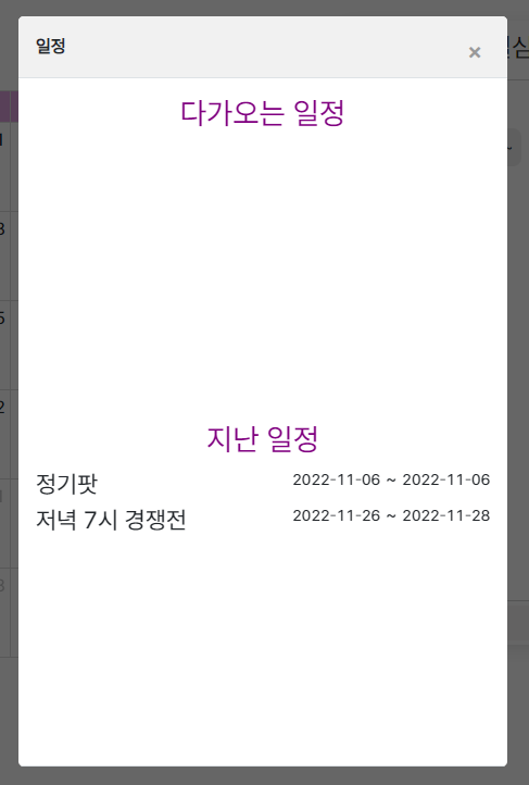 - ์๋น์ค๋ช : ์จ๋ผ์ธ ๊ฒ์ ํ ๋ชจ์ง ๋ฐ ์ผ์ ๊ด๋ฆฌ ์๋น์ค