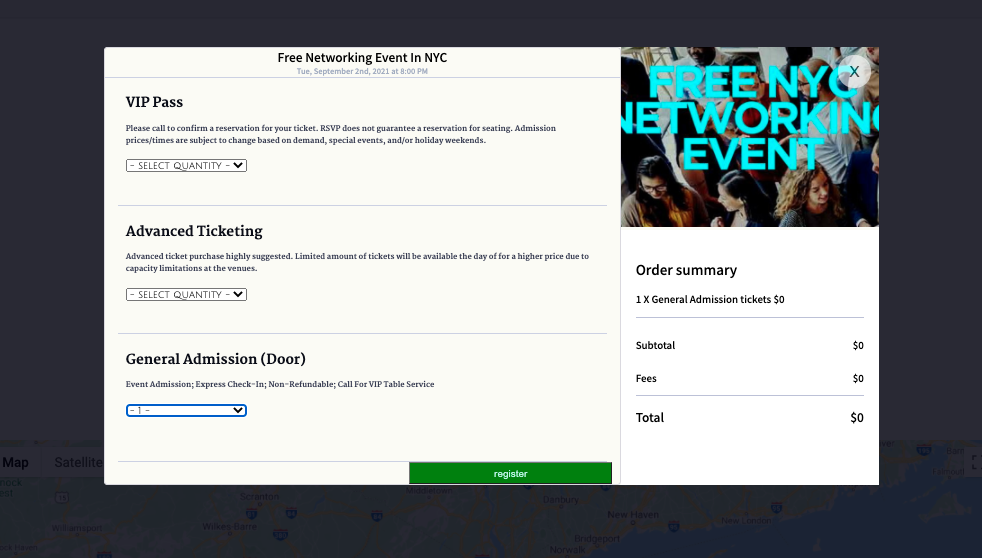 Ticket registeration is only valid for users not already registered or if the user owns that specific event.