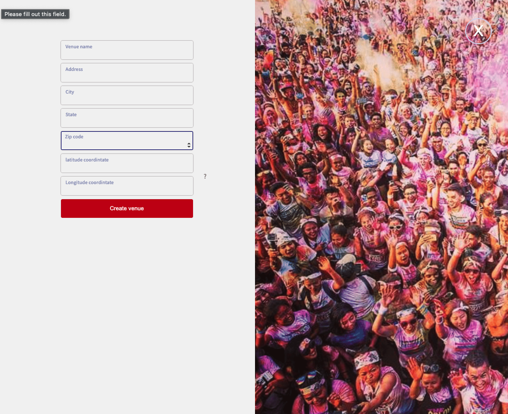 Users can create a venue if they do not see theirs on the list.