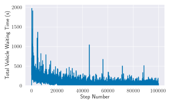 - The reward function that we used calculates the reward by calculating the change in cumulative vehicle delay