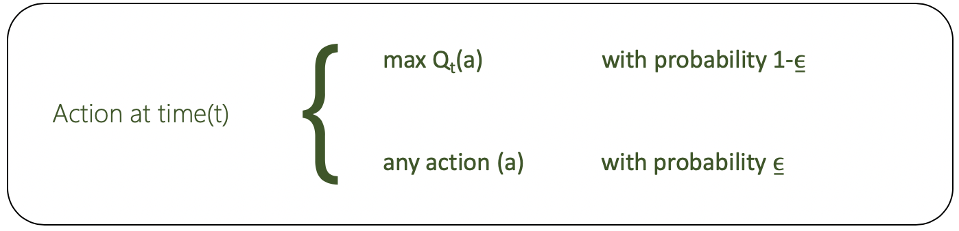- Action selection determined by an epsilon-greedy algorithm (picture above)