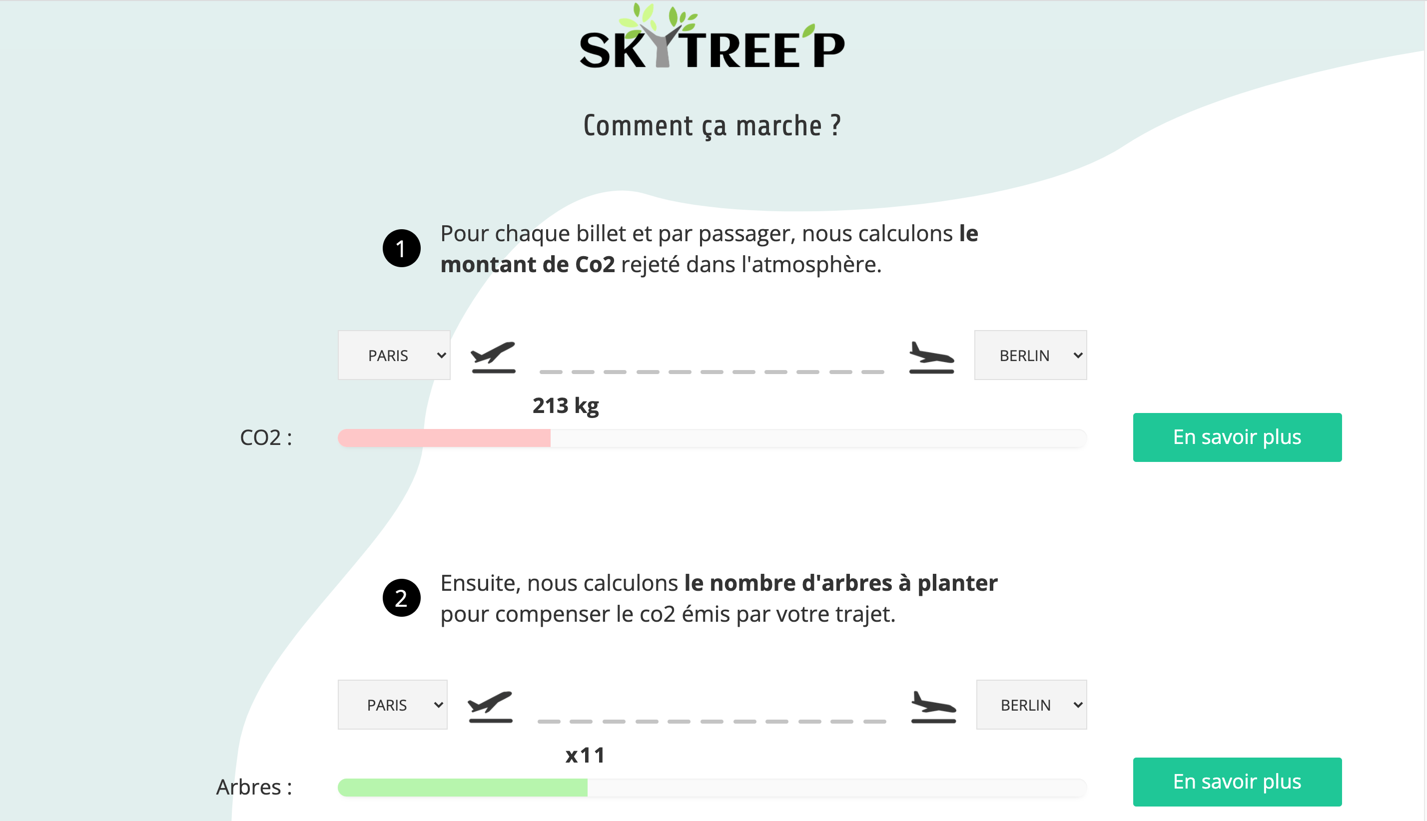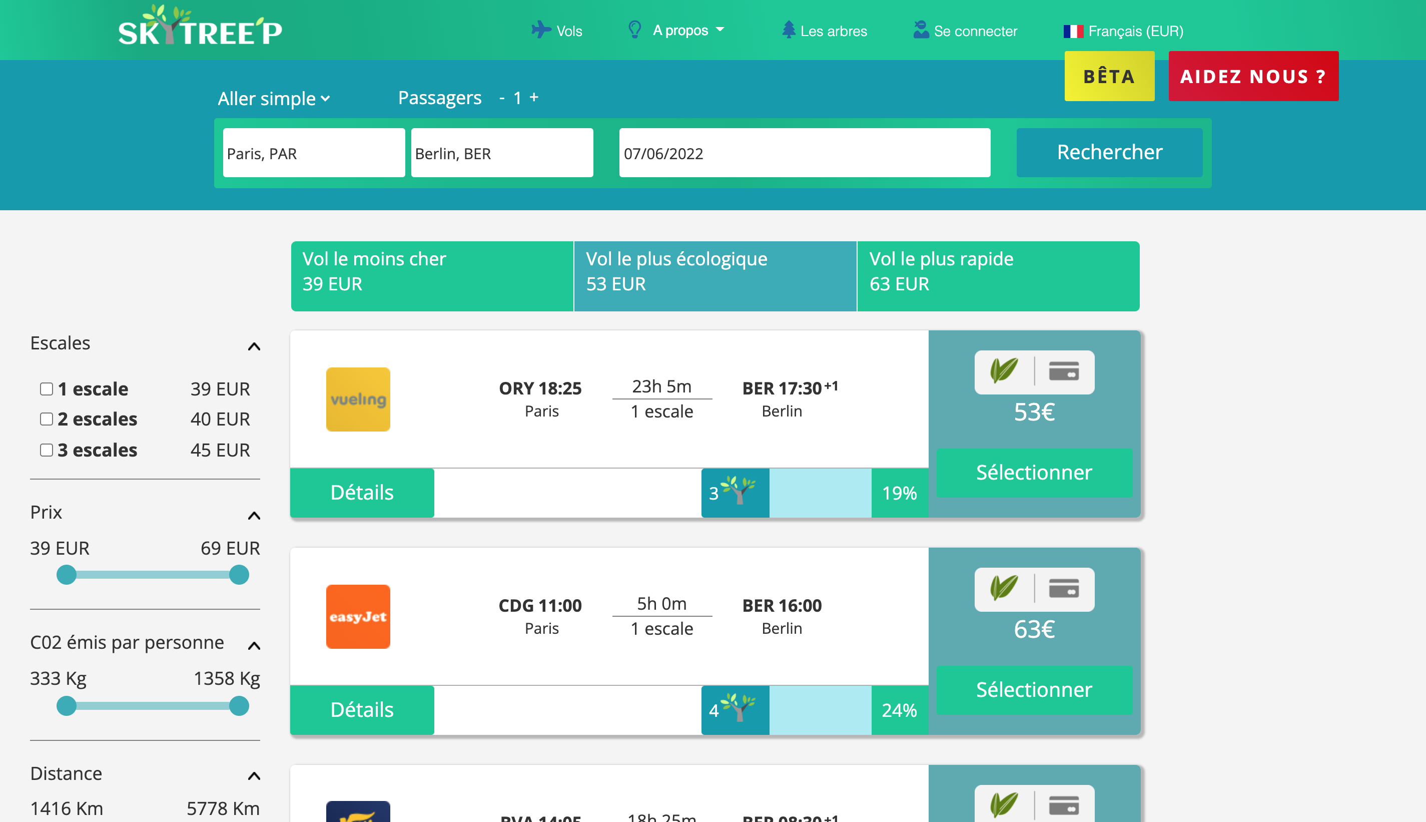Rentrez votre destination Réserver votre billet en filtrant selon votre choix, le plus écologique, le moins cher ou le plus rapide Sensibiliser vous sur l'émission des trajets les plus effectués en Europe