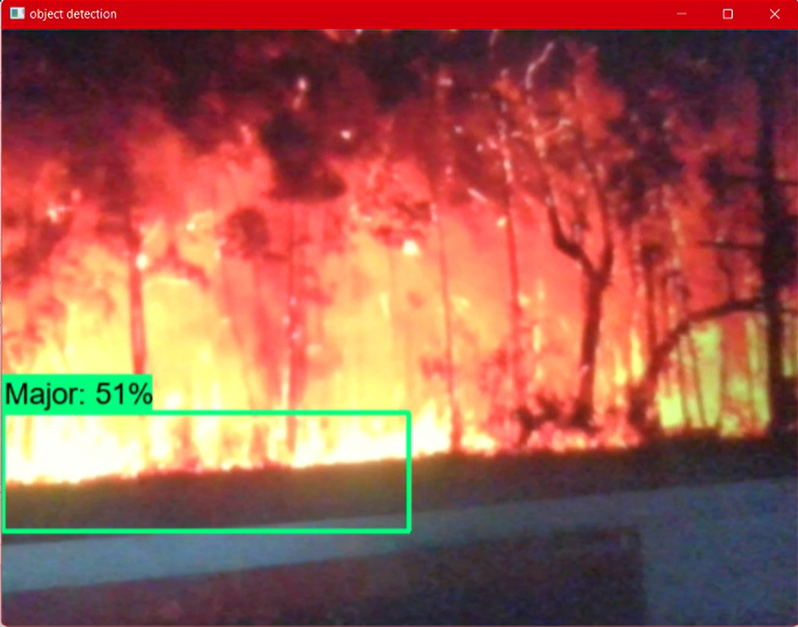 Fire Detection Model was made using Machine Learning of over 100 files and 5000 steps to maximize accuracy. The model can detect Major Fires upto 60% accuracy and Minor Fires upto 55% accuracy. Non Fire situations can be detected with 72% accuracy.
