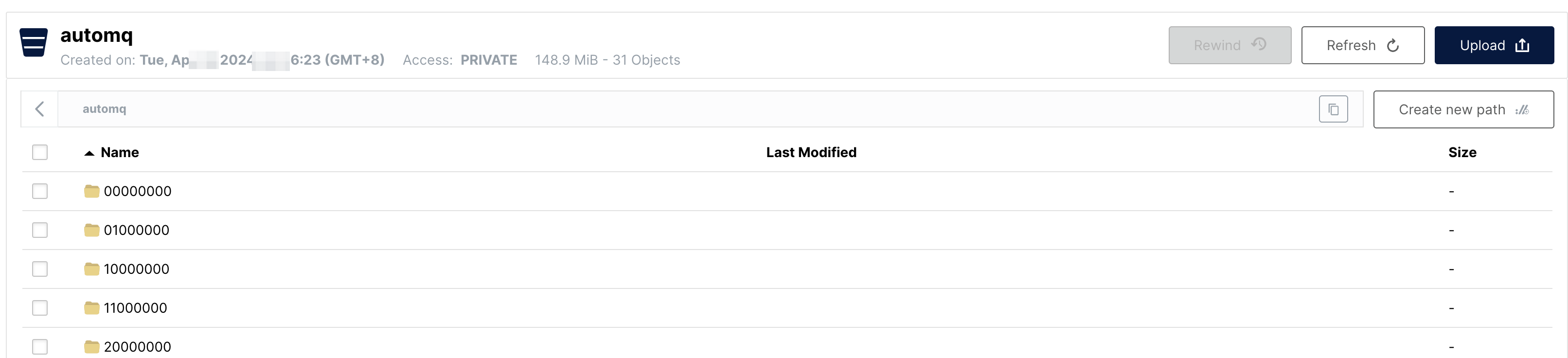 We need to log in to the webUI to create a bucket for data storage, the bucket we create here is named automq.