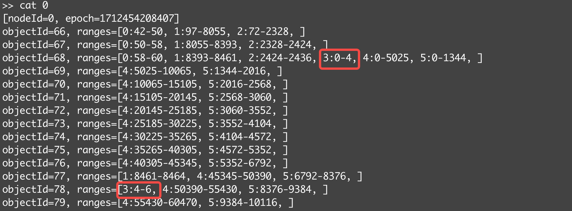 objectId=78, ranges=[3:4-6, 4:50390-55430, 5:8376-9384, ]