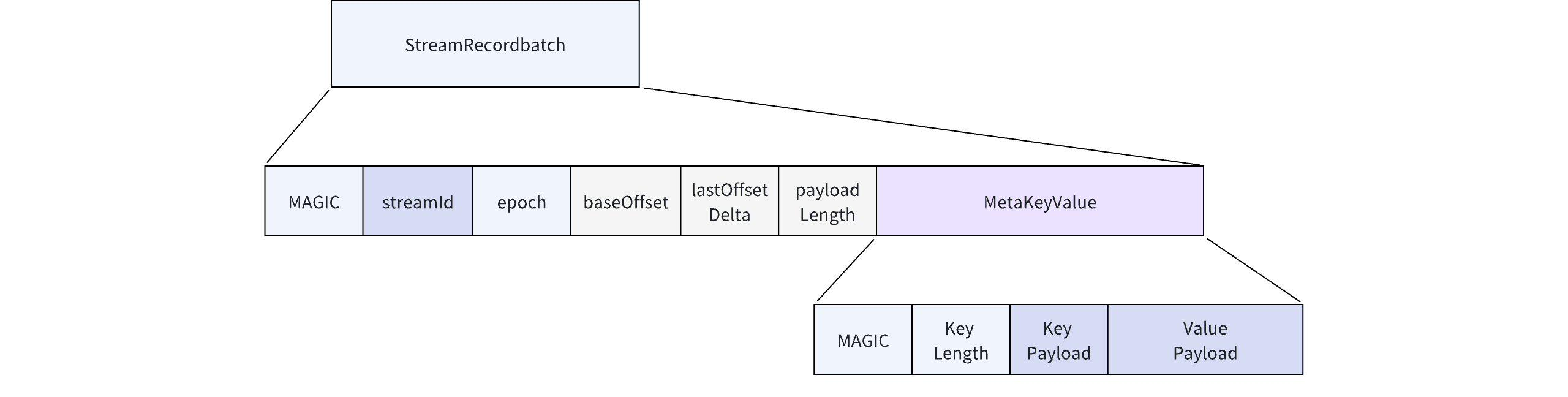 In reality, MetaStream is recorded in the s3Stream storage layer using a Key-Value format.
