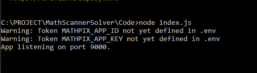 npm run build- Verify that your Command Prompt is in the "Code" folder of MathScannerSolver. If it is not, use the cd command followed by the location of the code folder to change to the proper directory.