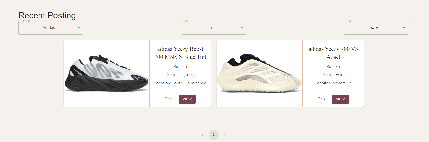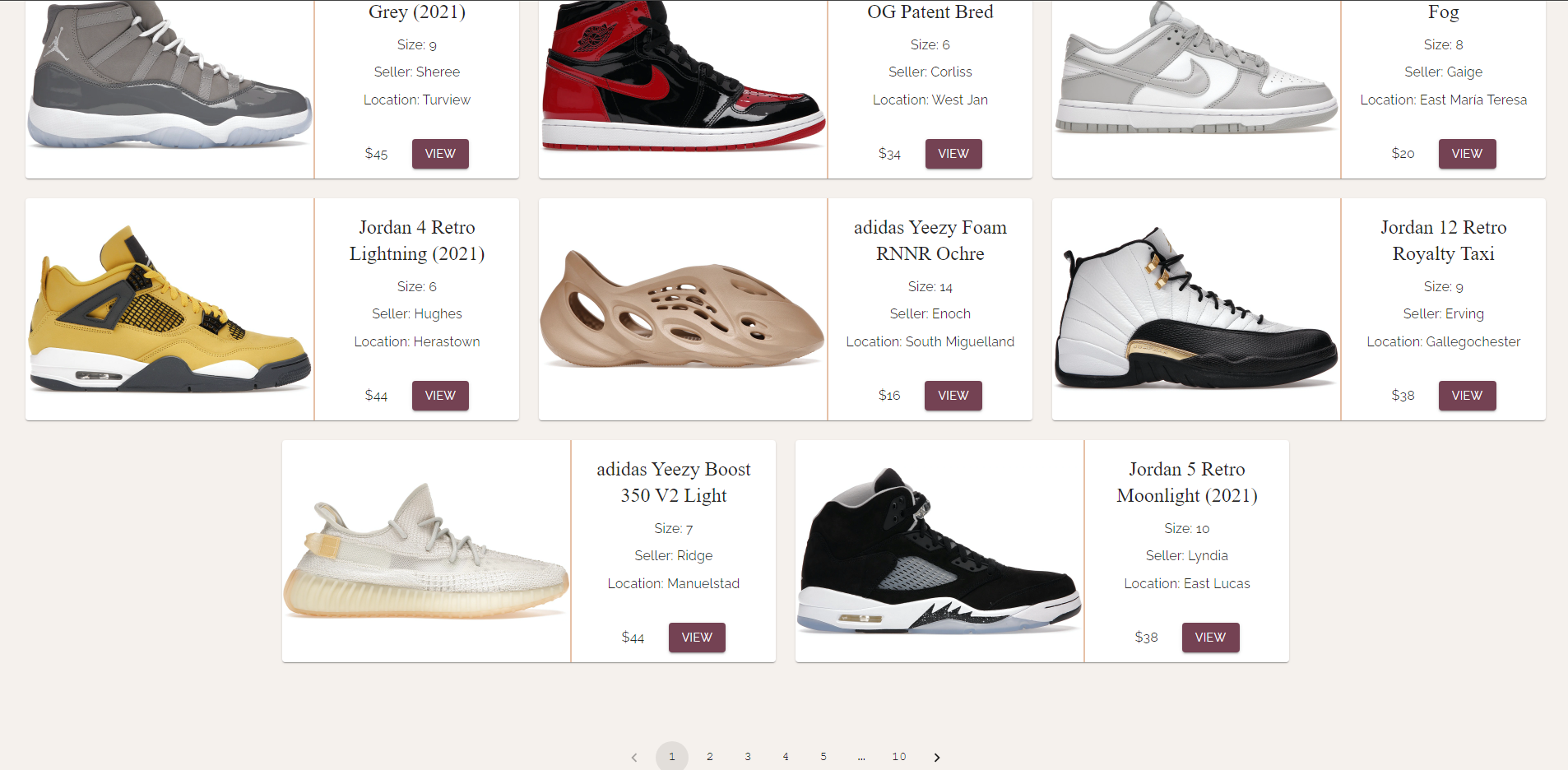We seed the application with data on startup. The sample data can be found here. The mock data was generated with python scripts and the seeder files load the JSON generated from the python file. The screenshot below shows the mock data with 10 pages worth of sneakers.