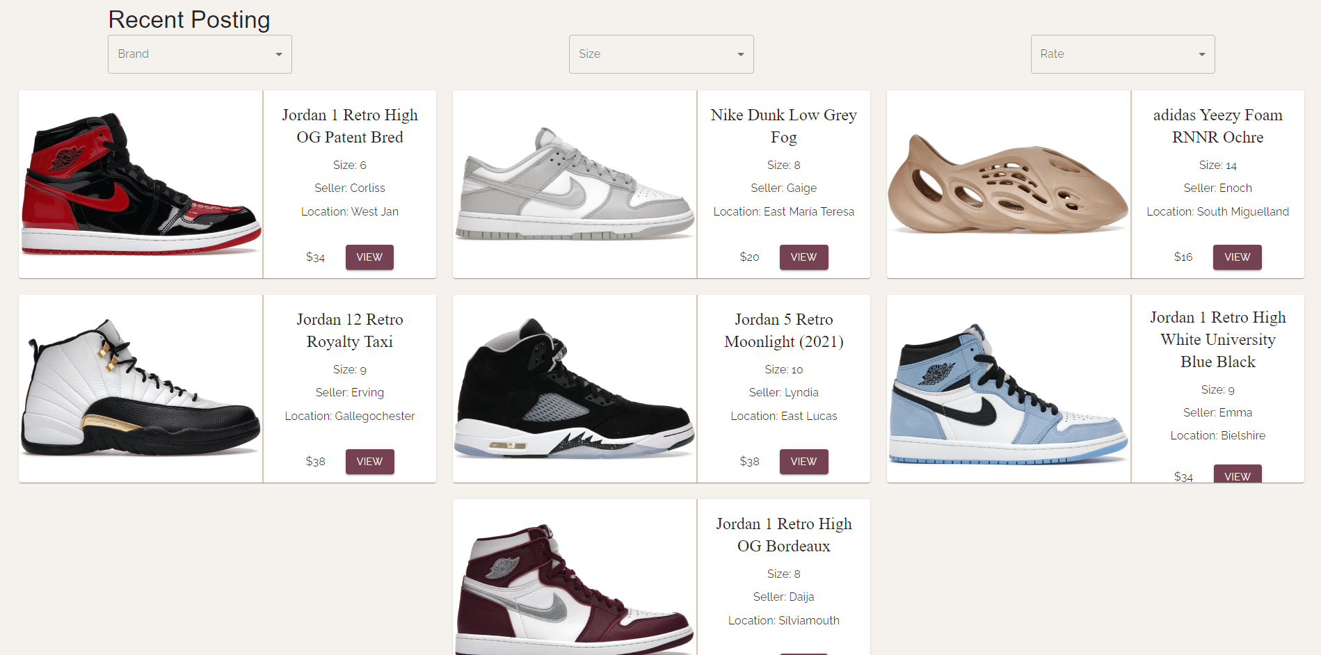 - View all sneakers (generated through mock data)