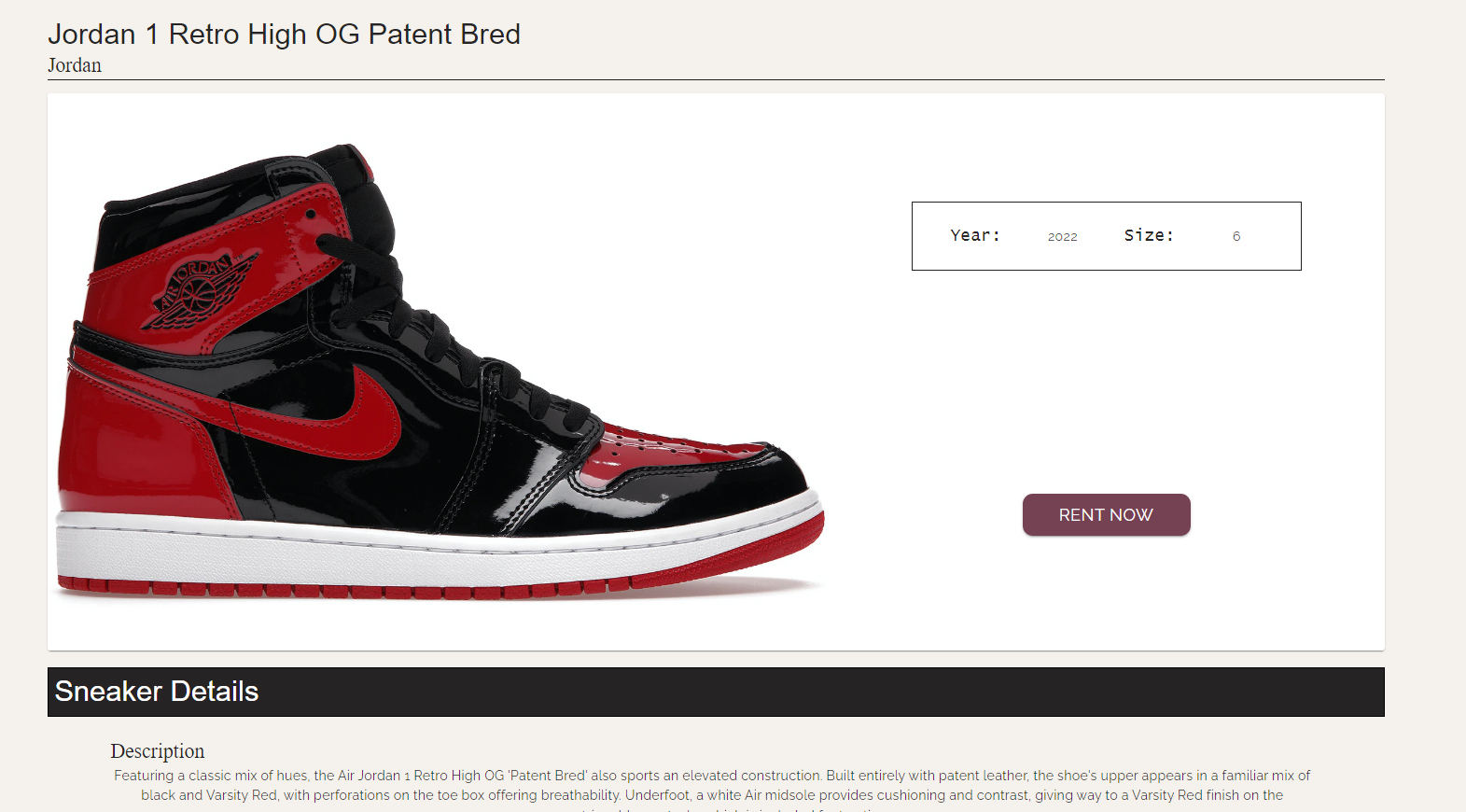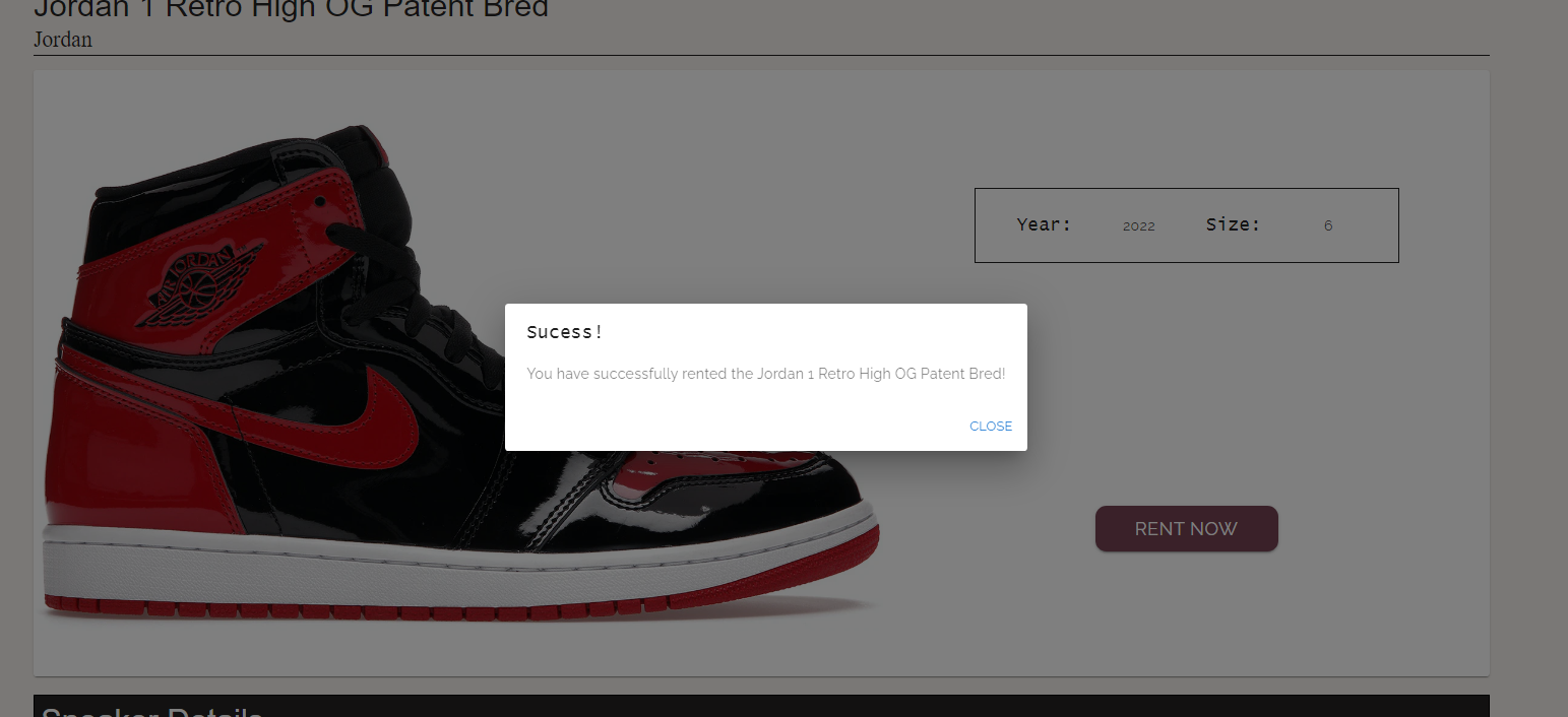 - View sneaker listing and rent sneakers