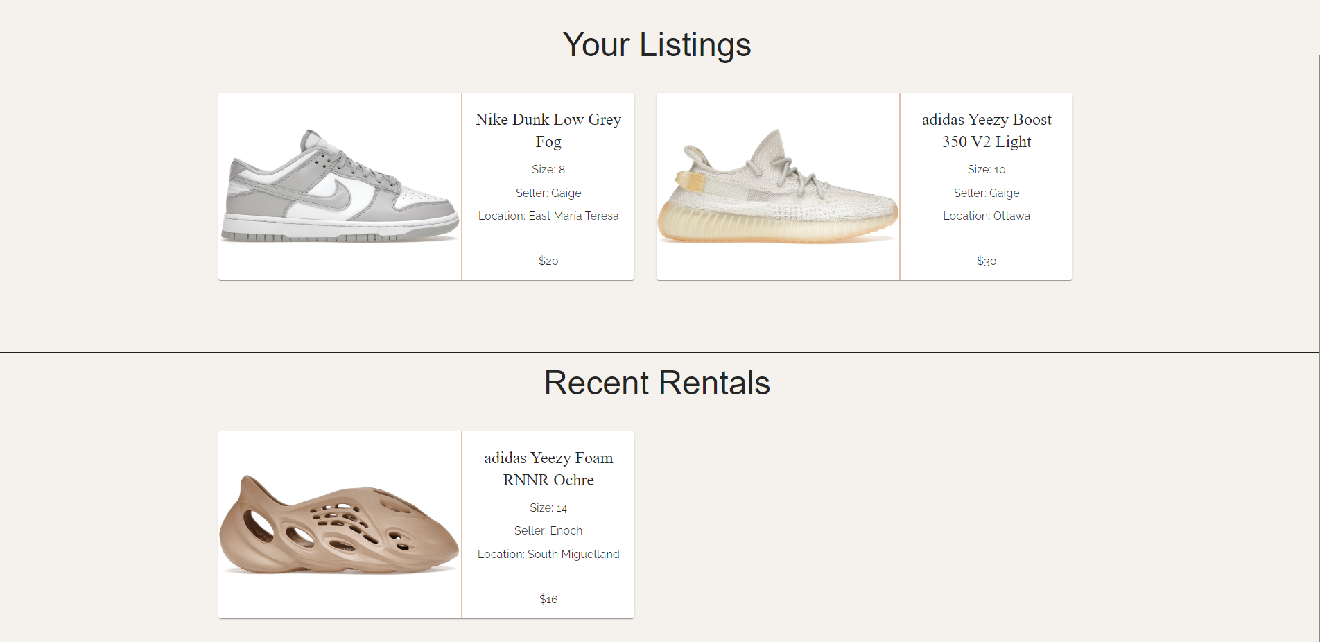 - User view sneaker listing and sneaker rentals