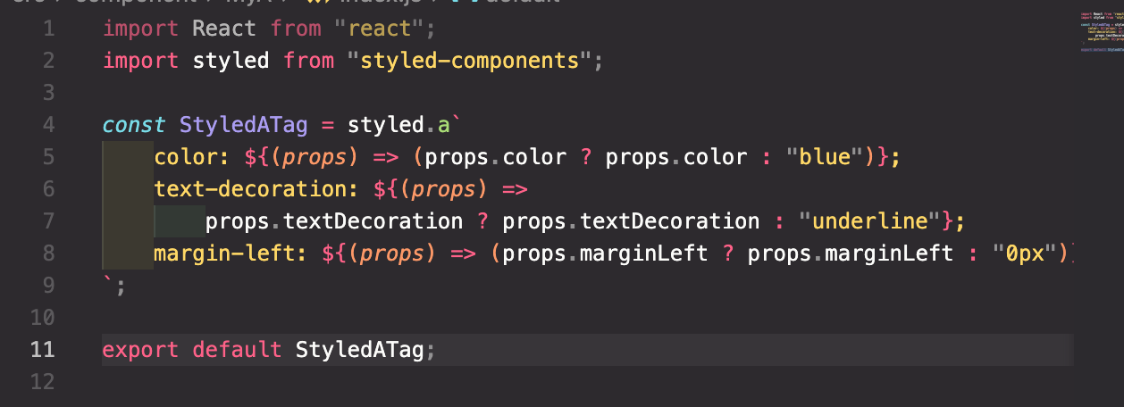 color: ${(props) => props.color || "#212529"};이를 단축 평가 (Short circuit evaluation) 이라고 합니다. (참고: http://milooy.github.io/TIL/JavaScript/short-circuit.html#%E1%84%8B%E1%85%A8%E1%84%8C%E1%85%A6)
