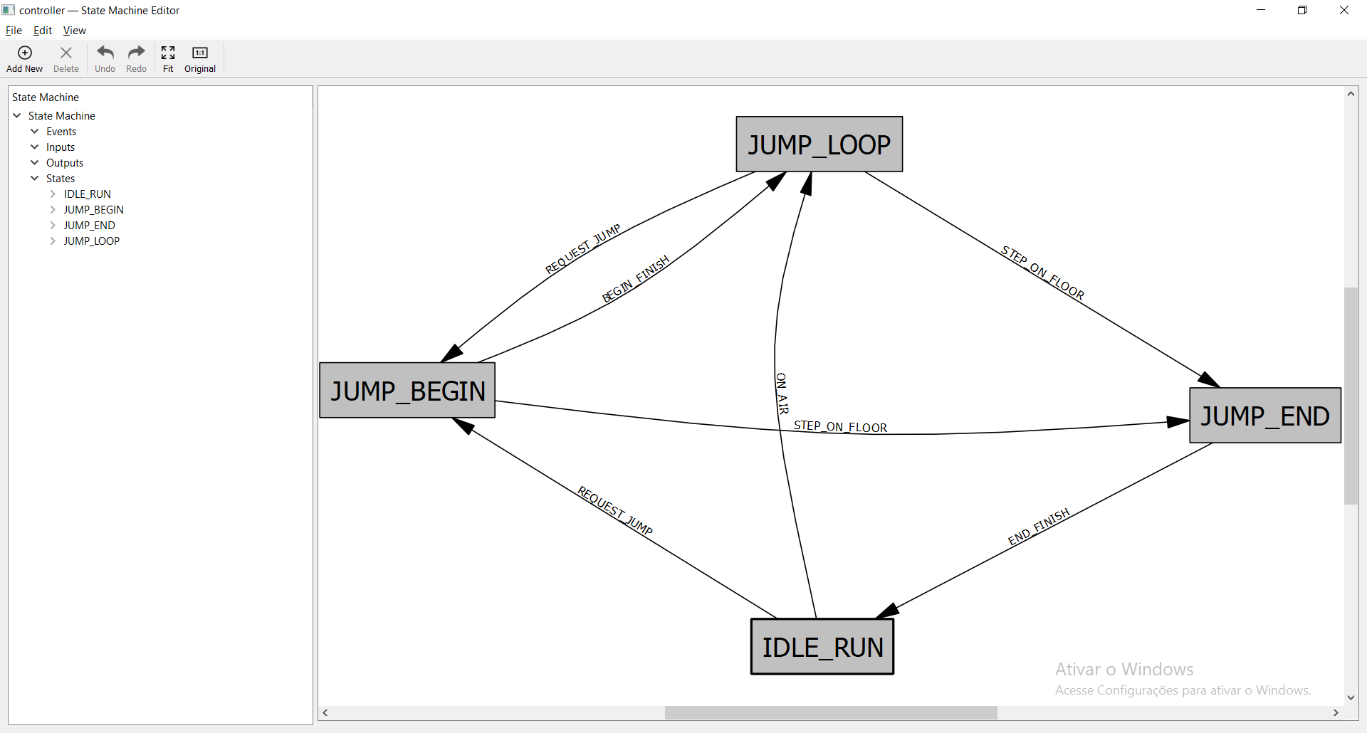 The software we are using the model the State Machines is Finite State Machine Editor, you can download it, make your state machines, and export them as a XML file.