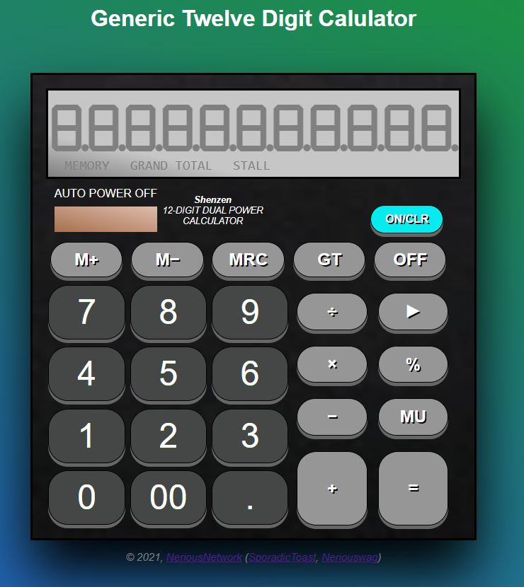 - Authentic Simulation of Twelve Digit Segement Displays