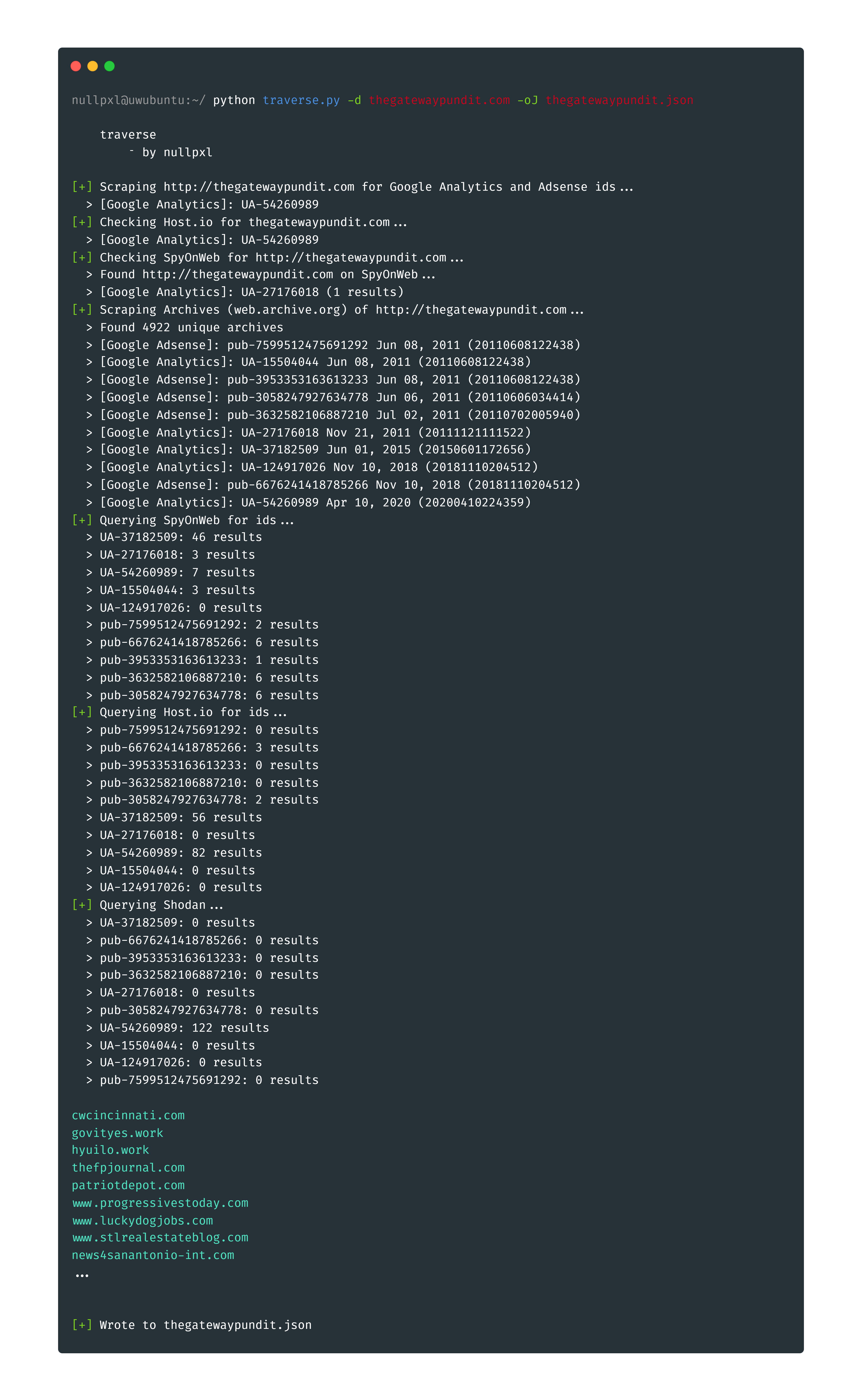 - Disabled by default, to enable it open traverse.py and add "webarchive" to the 'services' list.