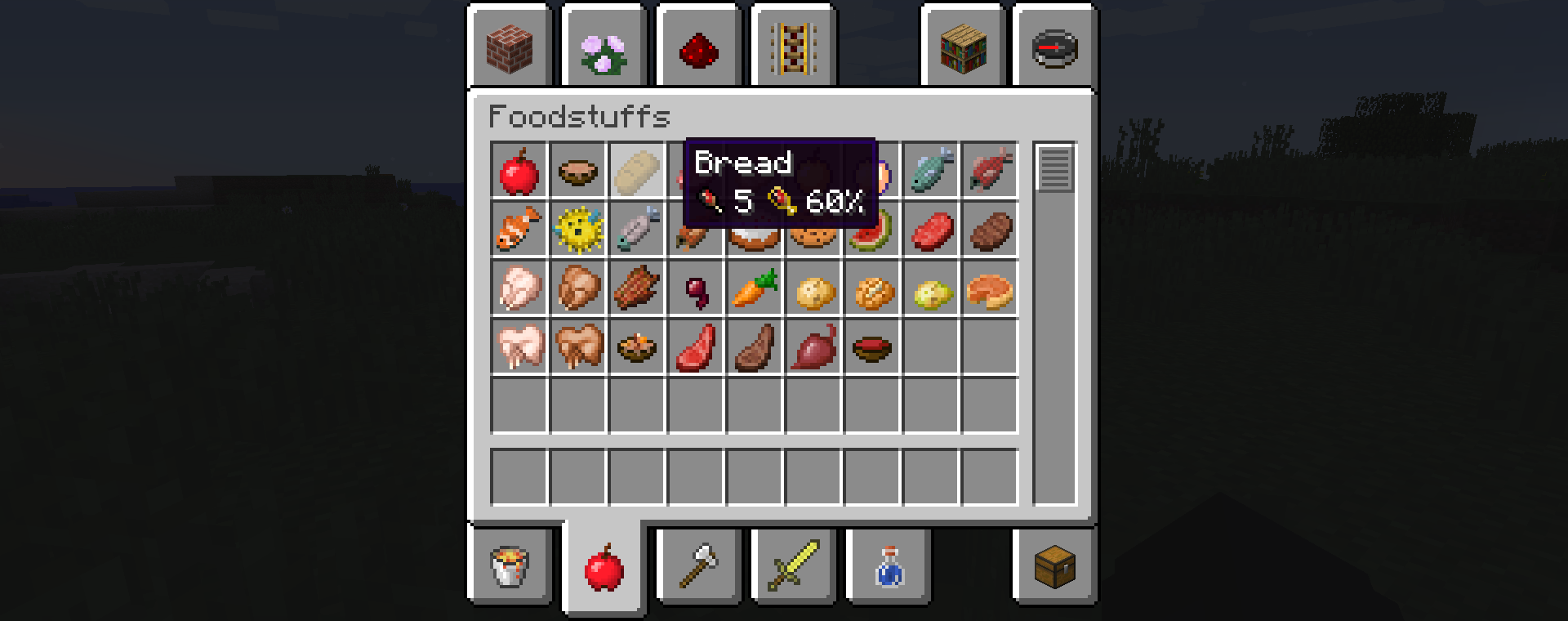Add a tooltip for foods, which can display food points as integers and saturation as percentages.