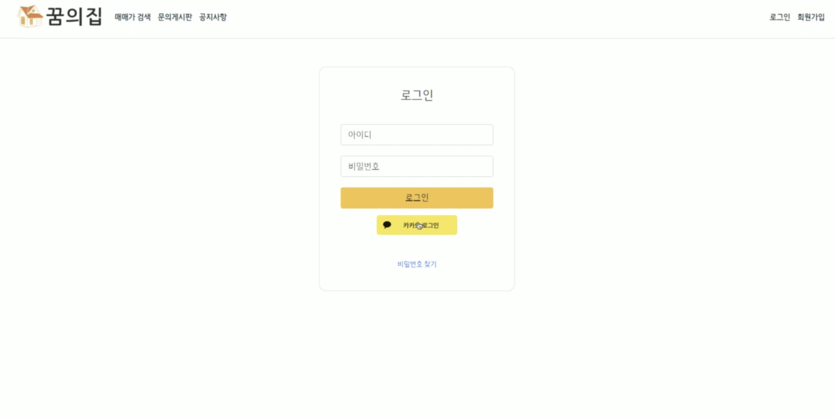 일반 로그인 및 카카오 로그인이 가능합니다.