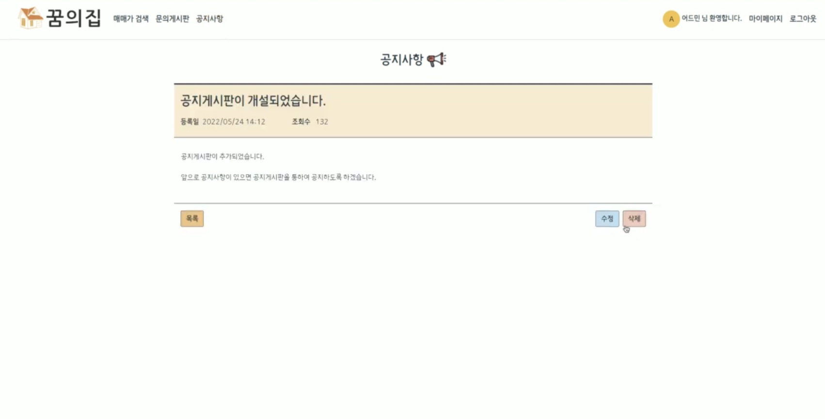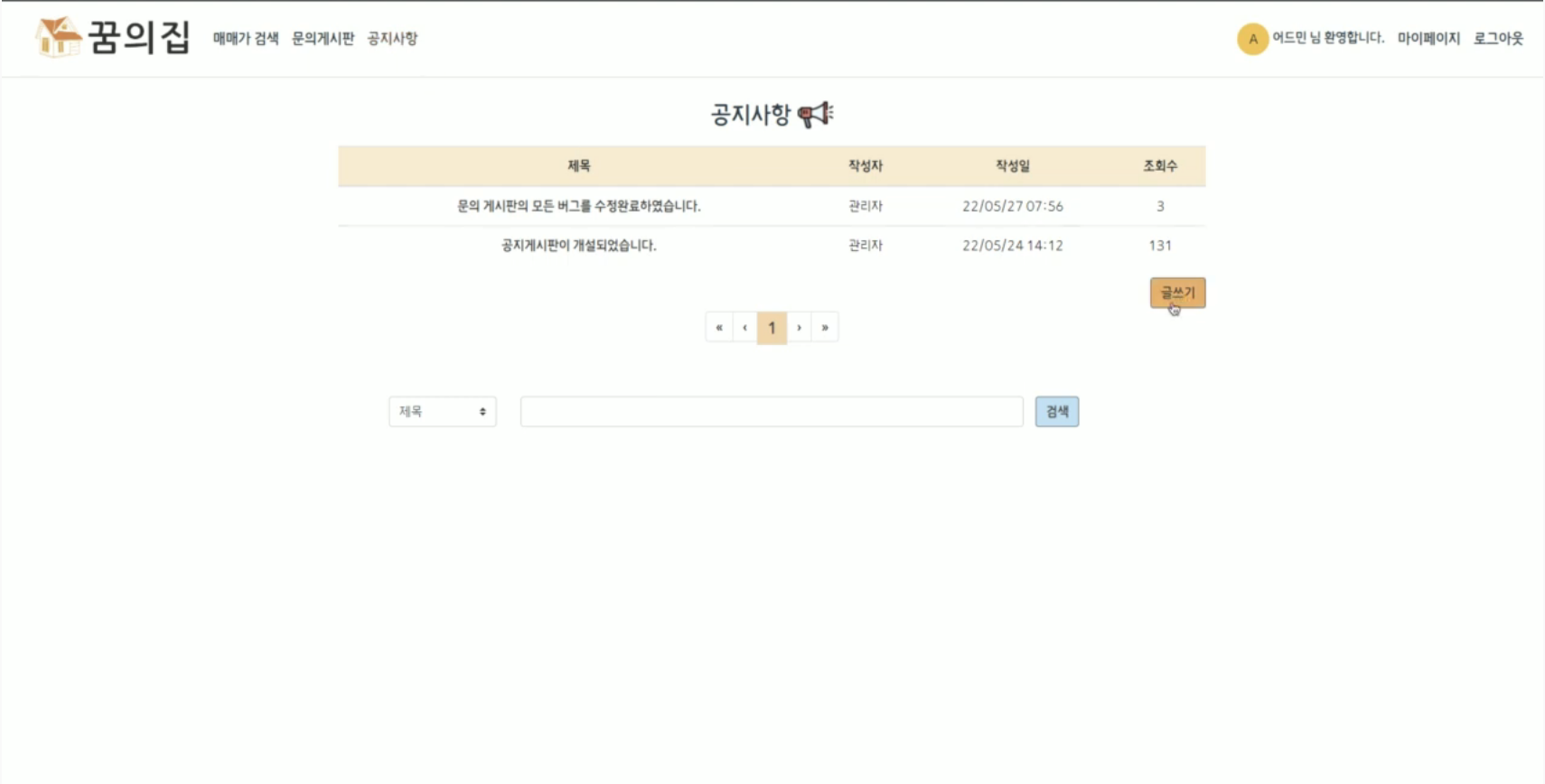 공지사항 게시판은 관리자만 글을 쓰고 관리할 수 있습니다.