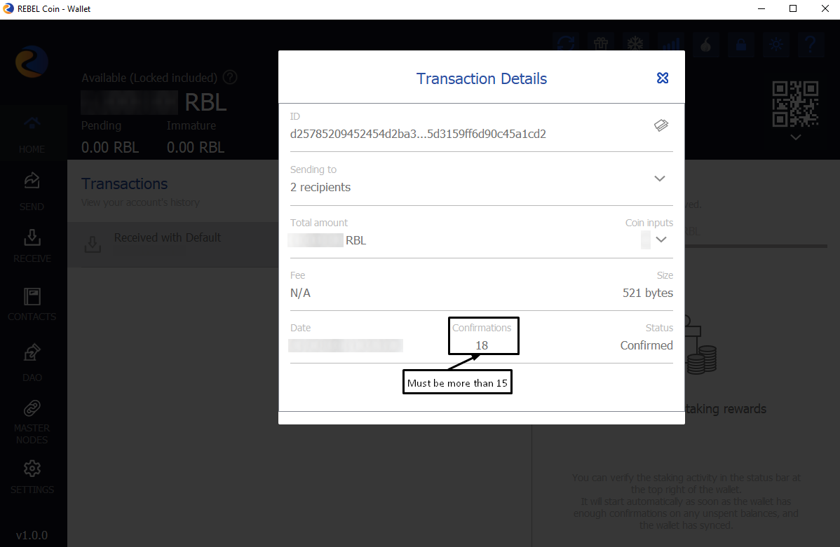 4. Wait at least 15 confirmation of transaction