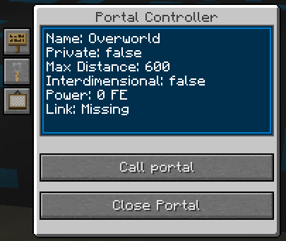 Then you can open the GUI and handle Portal calls from there. That portal can't do interdimensional teleports, for that you will need an Interdimensional Module placed instead of a Frame Block.