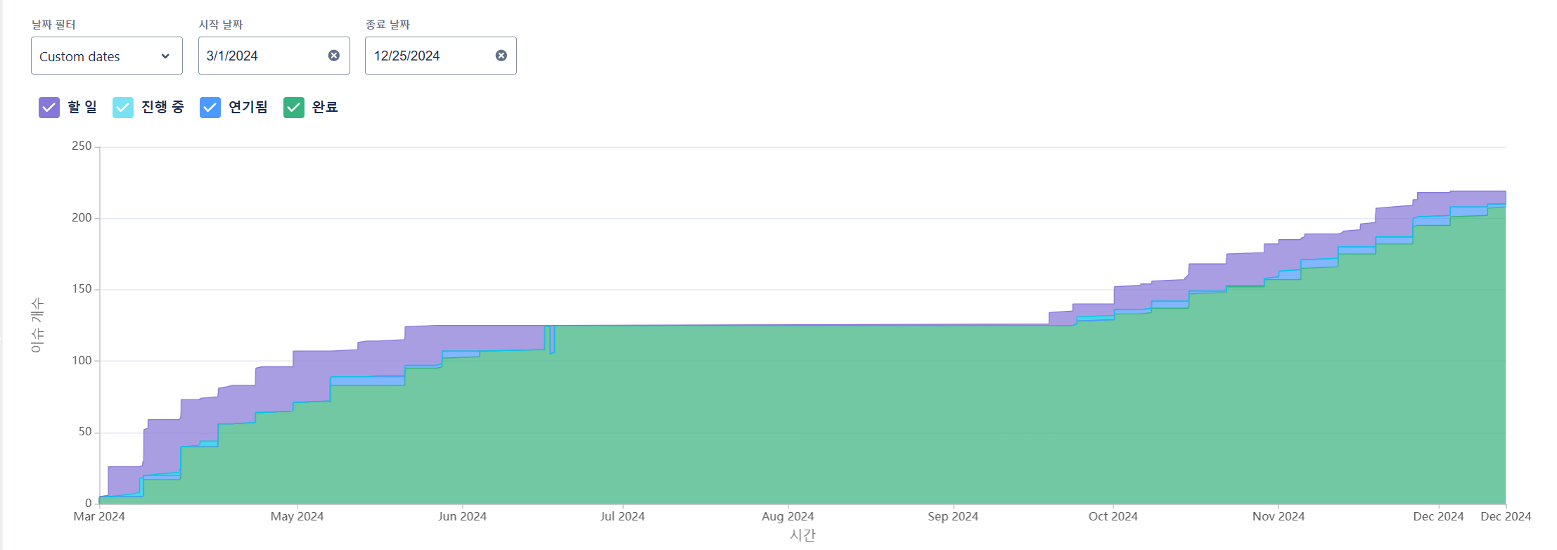 - 요약된 문의 내역과 기간 별 통계를 확인할 수 있습니다.