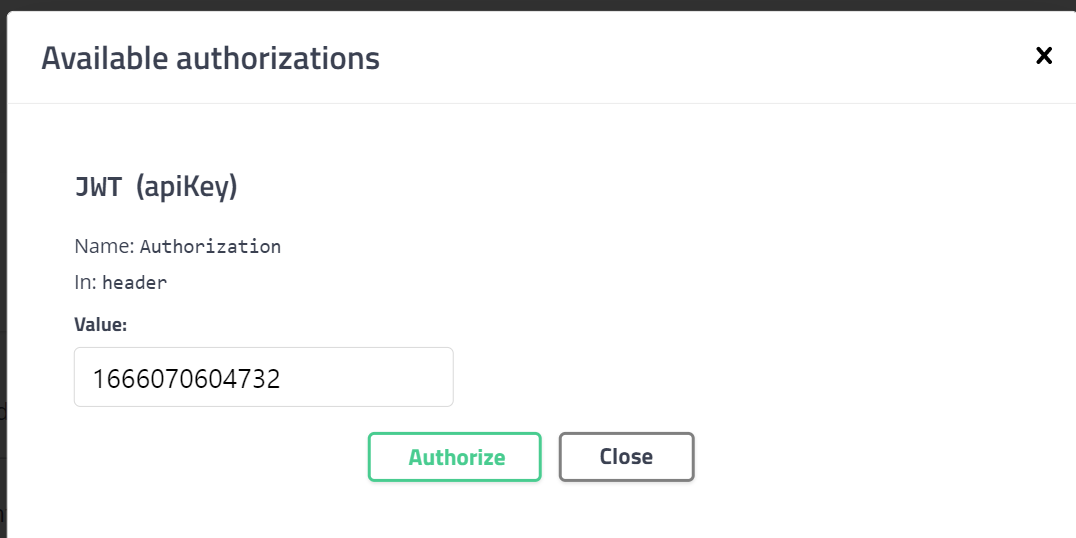 *결과로 받아온 token값을 Authorize에 넣어준다.