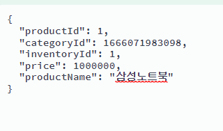 *categoryId, price, productName을 입력한다. inventoryId와 productId는 System.currentTimeMillis로 생성