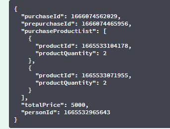 *가주문서 결과로 나온 prepurchaseId(가주문서 Id)를 입력한다*재고보다 구매할 수량이 많을 경우 재고가 부족하다는 메시지가 나온다.
