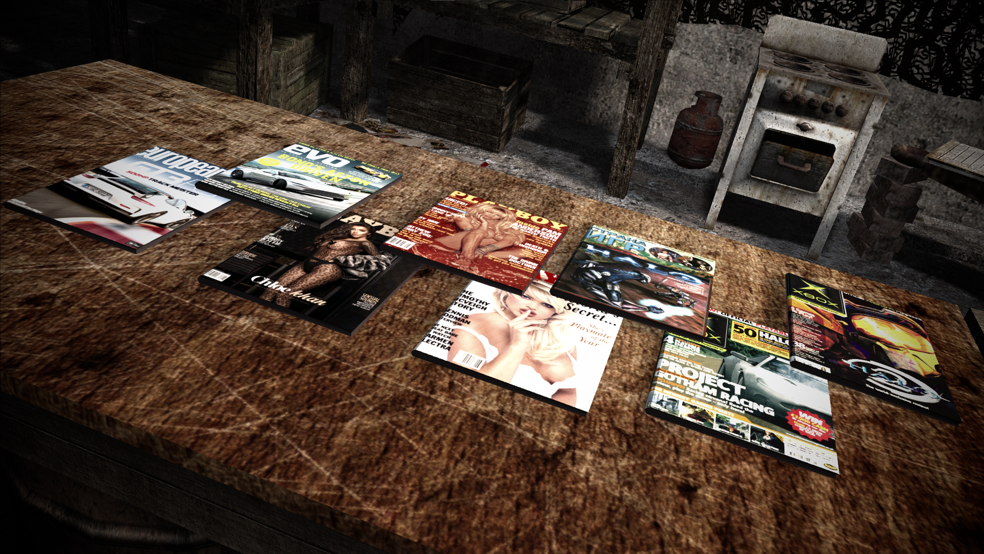 • New items : - Added 3 *men* magazines : PLAYBOY magazines with Chloe Khan, Nicole Whitehead and Carrie Stevens; - Added 2 video game magazines : Xbox : The Official Magazine March 2002 and December 2004 editions; • Other additions : - Added the ability to read magazines. So far, all 5 new magazines are readable; • Bug fixes : - Fixed addon removal script not deleting some items; - Various small fixes & tweaks.