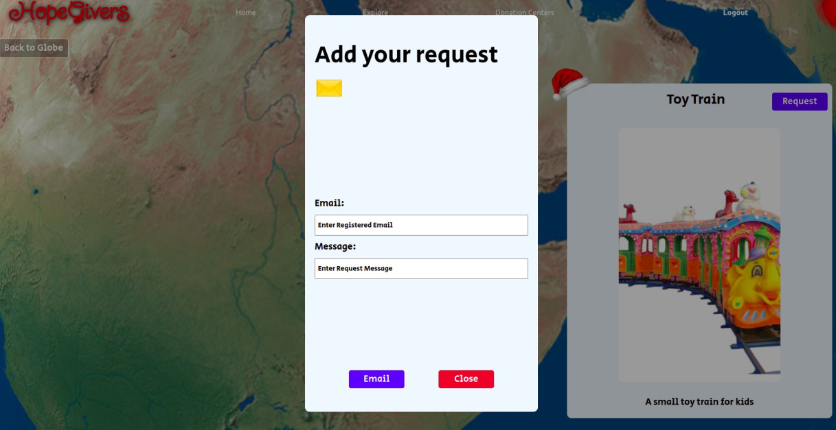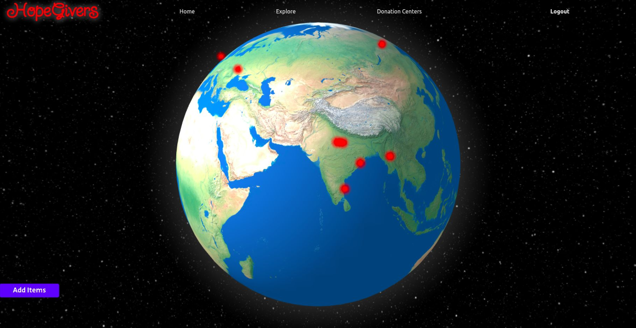 - 🔍 Explore: A unique 3D Globe UI displaying items to be donated for people to determine location easily and request.