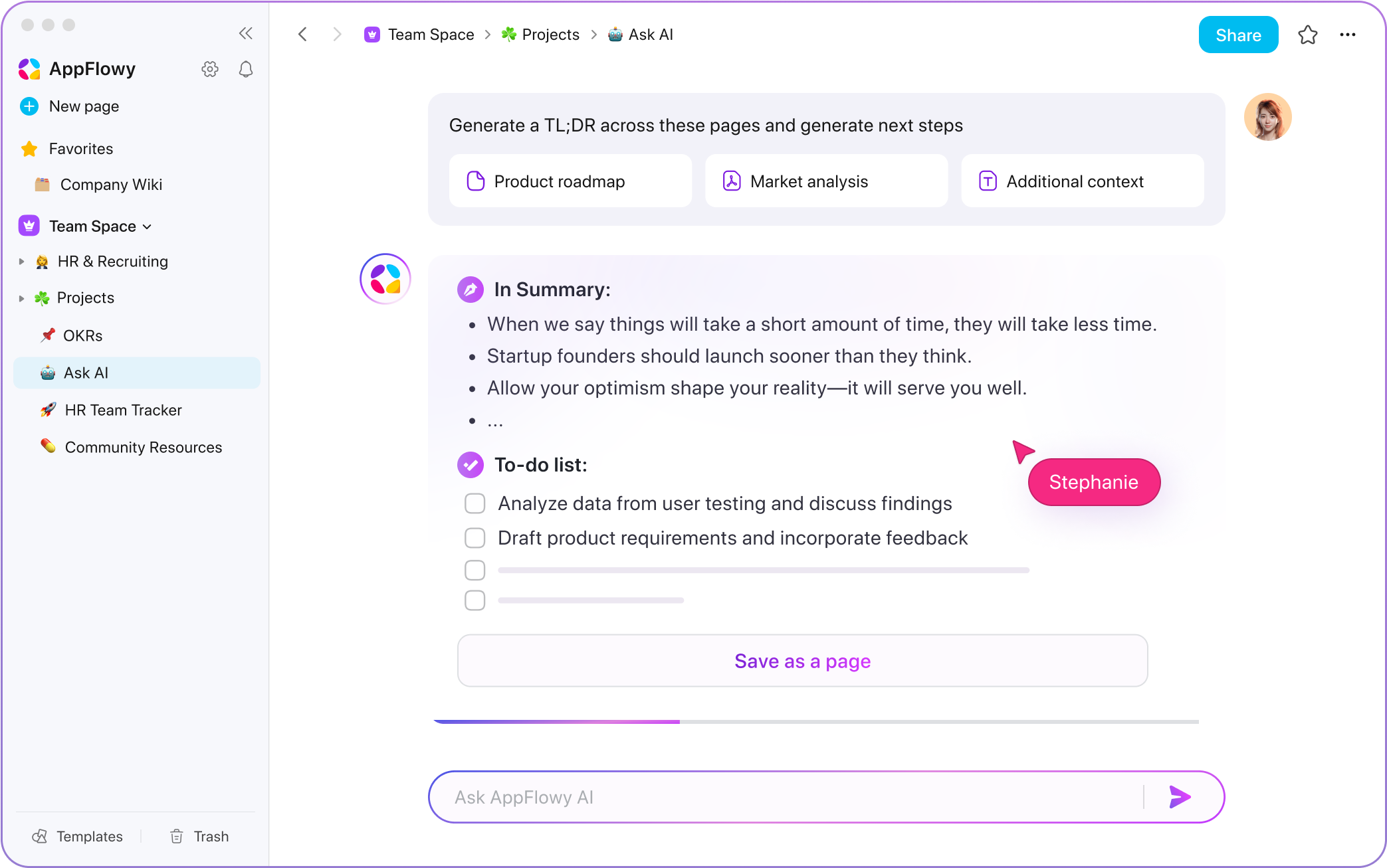 The limitations we encountered using these tools and our past work experience with collaborative productivity tools have led to our firm belief that there is a glass ceiling on what's possible for these tools in the future. This emanates from the fact that these tools will probably struggle to scale horizontally at some point and be forced to prioritize a proportion of customers whose needs differ from the rest. While decision-makers want a workplace OS, it is impossible to come up with a one-size fits all solution in such a fragmented market.