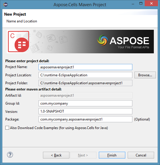 Aspose.Cells Maven Project wizard creates Aspose.Cells for Java API Maven project for using Aspose.Cells for Java API.