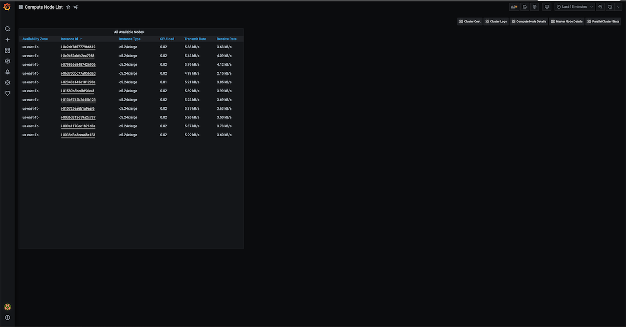 - Compute Node Details - similarly to the HeadNode details this dashboard show the same metric for the compute nodes.