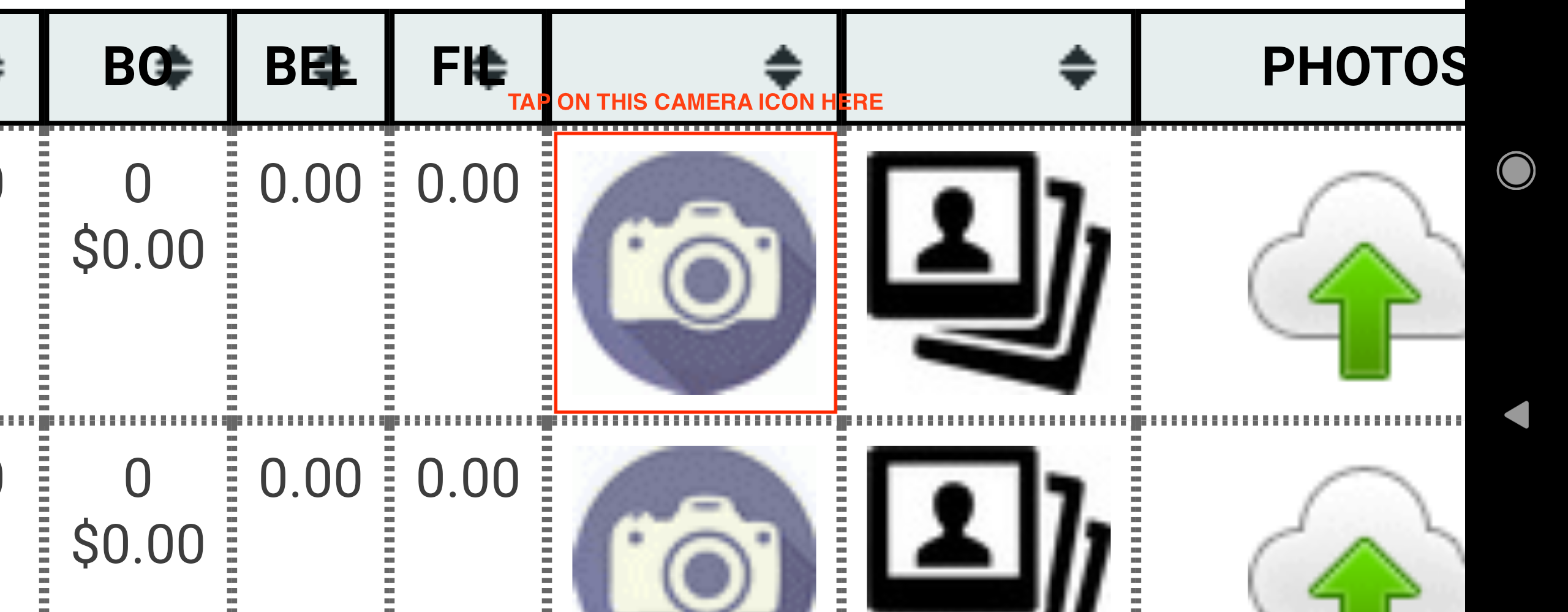 - a green button used to take patient treatment sheet pictures