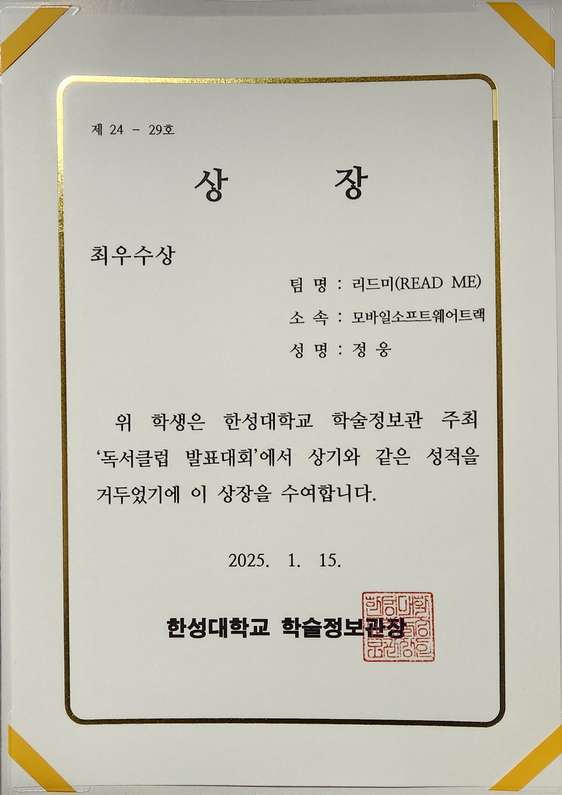 -ย [2023. 1,2ํ๊ธฐ, 2024. 1ํ๊ธฐ] ๊ต๋ด ์ฑ์ ์ฐ์ ์ฅํ์ ์ ์