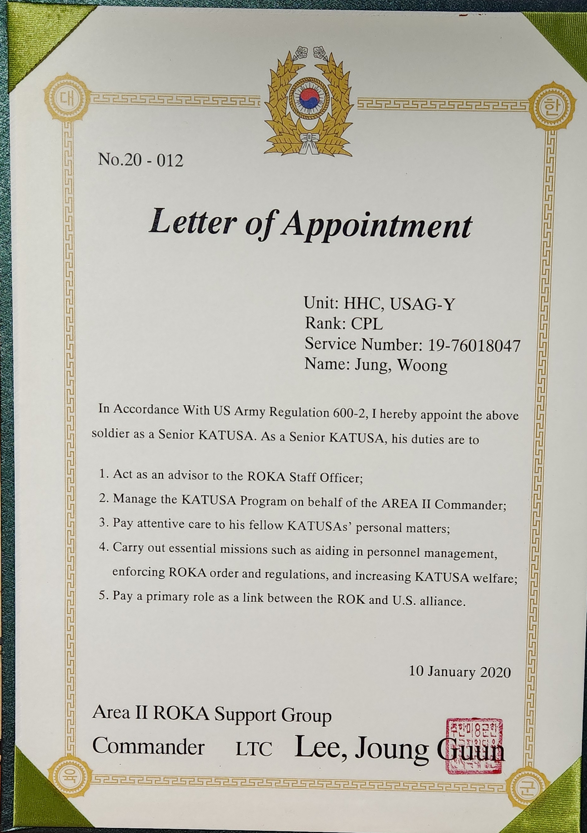 -ย [2019. 03. 18 - 2020. 10. 20] USAG-Y ์นดํฌ์ฌ ๊ทผ๋ฌด