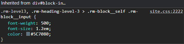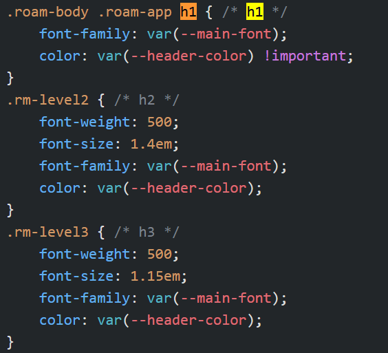 Hi, I am using Nox as imported or copied. Here is the resulting color  Here is the inspection for header 1  Here is the inspection for header 3  If I understand correctly: - The CSS code should result in all header levels sharing same color  - Somehow only header 3 got the color. Thanks for making the theme. NA