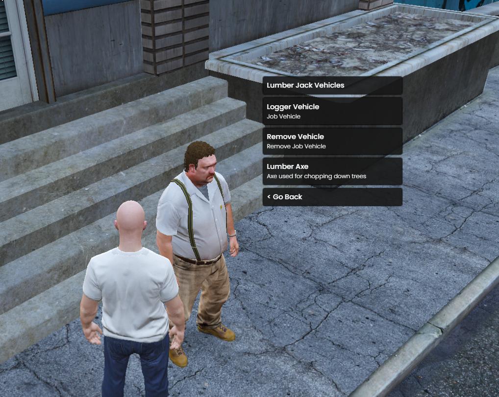 Change LegacyFuel to whatever fuel system in tr-lumberjack/client/main.lua Line 263