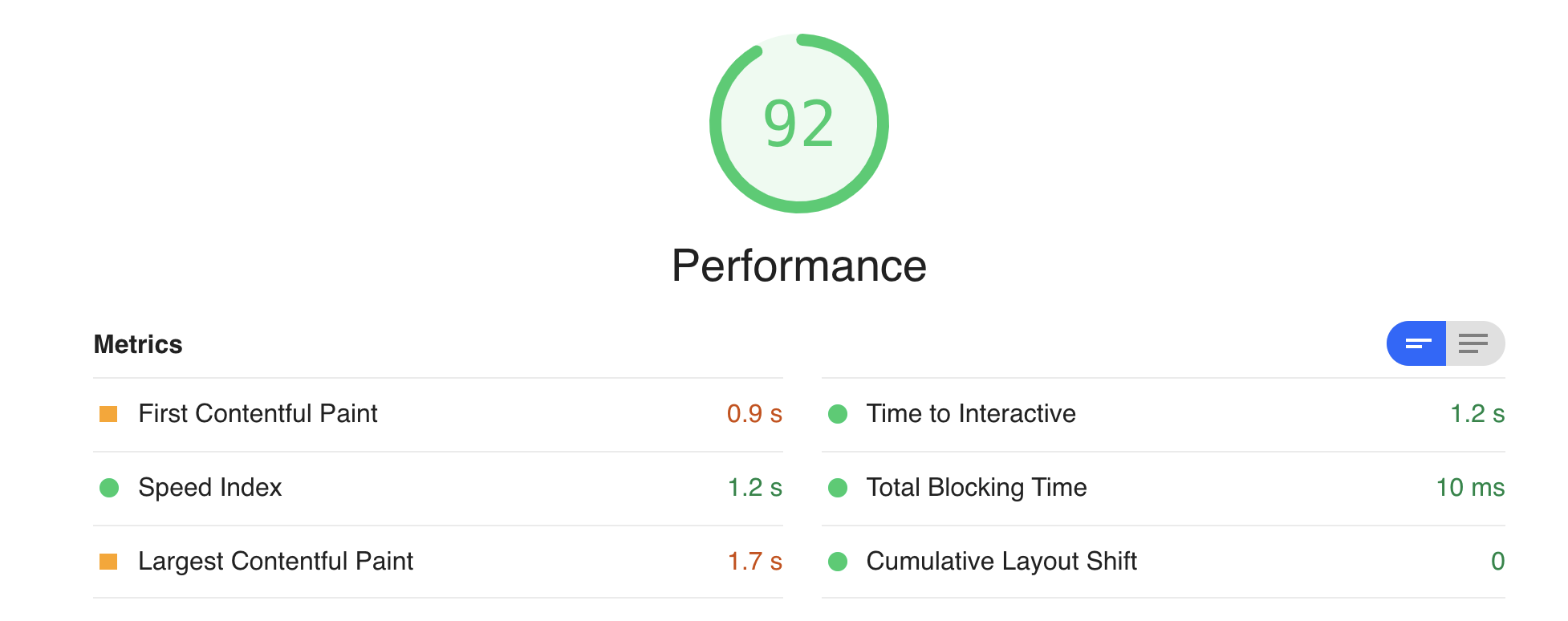 With this change, our desktop Performance scores now are in the 90s, which is more consistent with how things work when you run from Chrome developer tools.