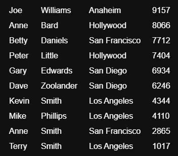 This example will always sort by city, then last name, and finally first name - all in ascending order.