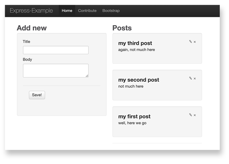 expressjs-example is a super light, super simple developer-friendly app built on Node.js, feel free to copy it and build your own application.