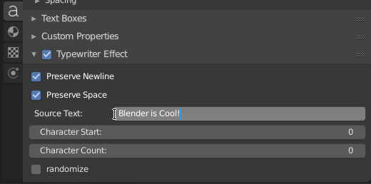 In the "Object Data" menu, scroll down to find the "Type Writer Effect" checkbox and enable it