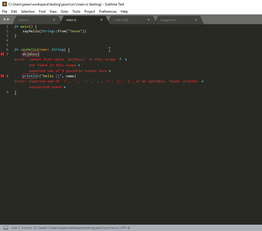 Running Tests with Rust Enhanced Highlighting errors and warnings with Rust Enhanced