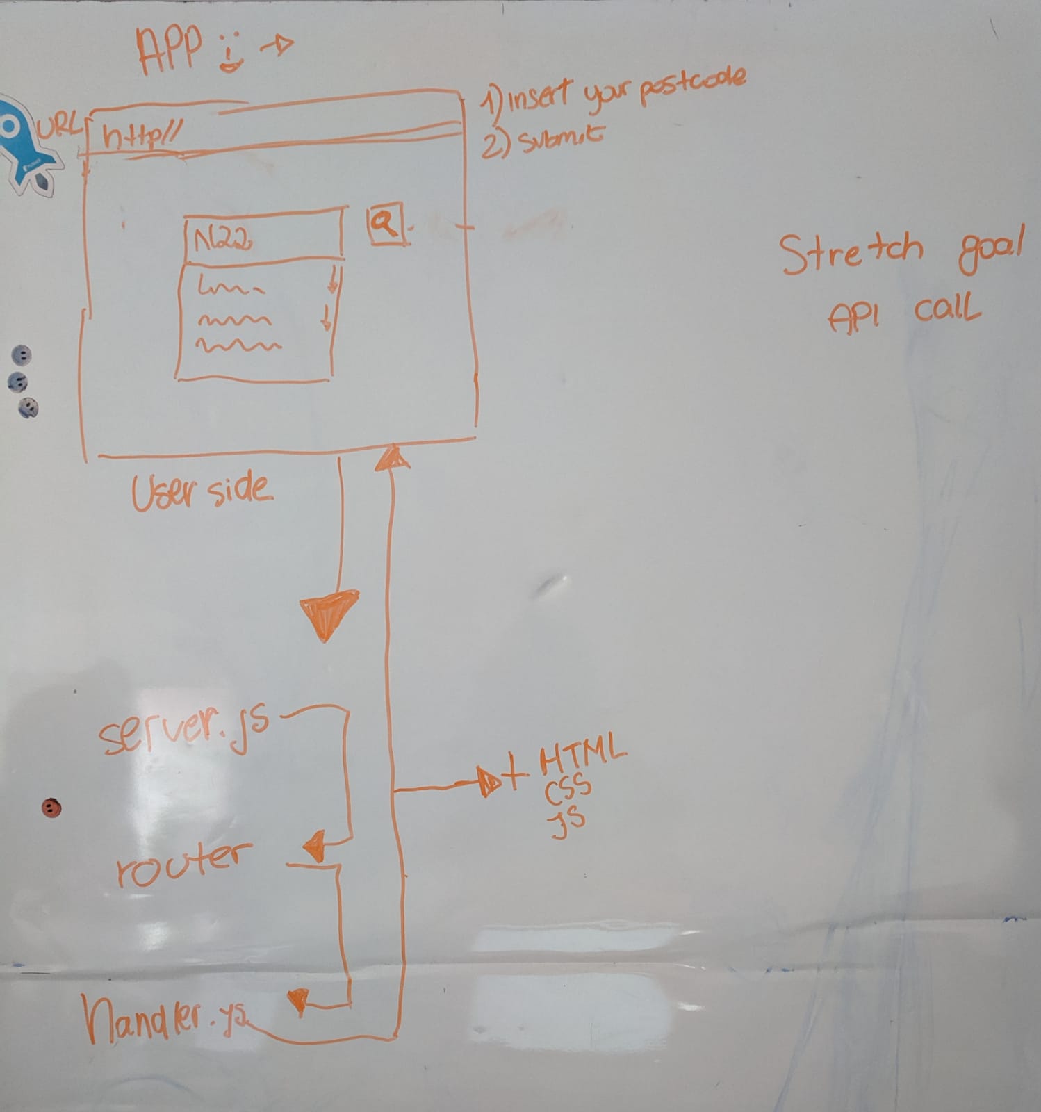 Our aim was to build a simple postcode autocomplete app using Node.JS, HTML and CSS.