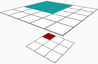 The 3x3 kernel mask do convolution on the 2D matrix.For RxC dimensional input, (R-2)x(C-2) dimensional output matrix is created.