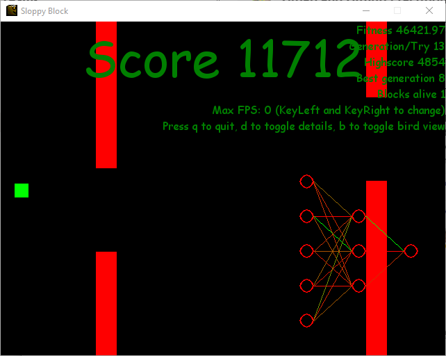 /img- Assets used in the applicationbackground.png- The background pictureblock.png- A sloppy block (The player/AI)cloud.png- A cloud in the background, which scrolls from right to leftlowerpipe.png- A picture for the lower boundary of a pipe pairupperpipe.png- A picture for the upper boundary of a pipe pair