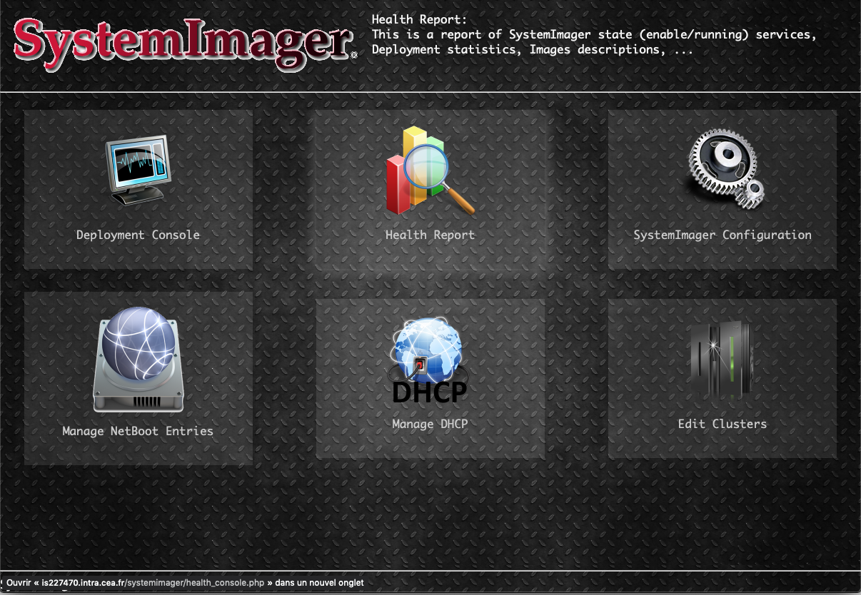 - Click on "SystemImager Configuration" gears icon.