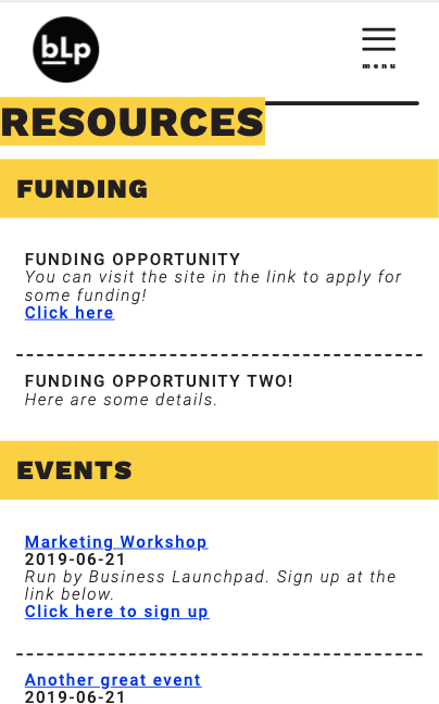 Business Launchpad aims to support young entrepreneurs (16-30) through running free workshops and mentoring sessions with groups and individuals. Part of their work involves collecting and digitizing information related to each individual’s journey in order to both better support them and to inform the future direction of the organization. Business Launchpad came to us asking for an app that would help to facilitate their data collection while also providing something that would be useful for young entrepreneurs. Most of their data is held on Salesforce, often coming through forms created with Form Assembly.