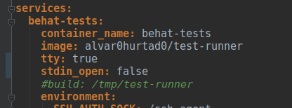 **ERROR FOUND**: IF YOU ADD THE LINES COMMENTED ON THIS ISSUE, THE GITLAB RUNNER WILL HANG BECAUSE THIS: If you add `tty: true` and `stdin_open: false` to the behat service you will get a full coloured output.  Sample: