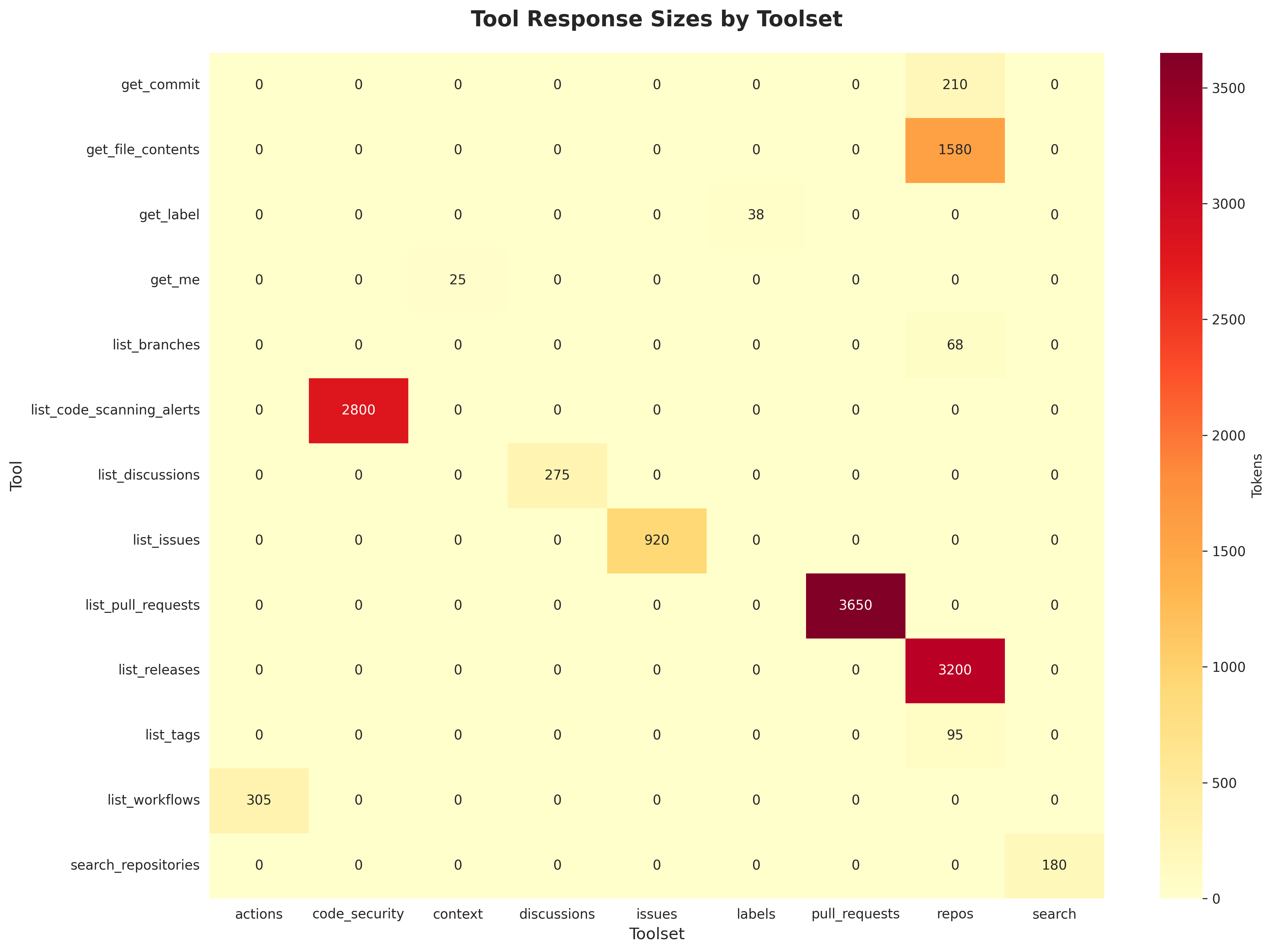 get_label(38 tokens, rating 5). Context-heavy tools:list_pull_requests(3,650 tokens),list_releases(3,200 tokens), andlist_code_scanning_alerts(2,800 tokens).Full Structural Analysis Report